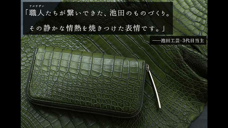 他の画像を見る 残り1本【池田工芸】《YouTube限定裏メニュー》バーニングアリゲーター一枚革財布:千年の繁栄を願って染めあげた新たな縁起色 『千代緑』グリーン【6月25日頃出荷】 販売価格 ¥ 242,000 税込 お気に入りに登録する