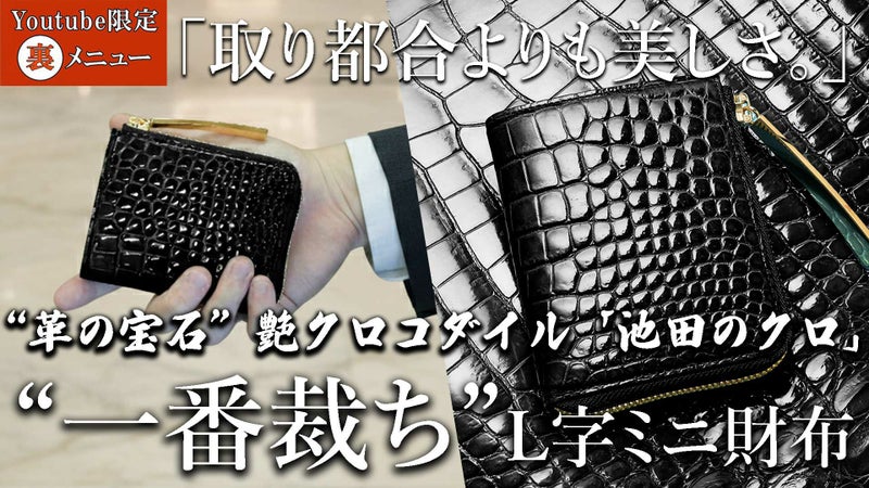 〈“革の宝石”艶クロコシリーズ!伝統色『池田のクロ』を片手に収まるサイズ感で堪能する!艶クロコダイル≪一番裁ち≫L字ミニ財布 最新オーダー受付状況 〉 時点 2026年4月30日頃出荷分…残りわずか ※池田工芸では創業80年の歴史の中で築いたタンナーとの信頼により、 国内に入ってくる革の中でも、ごく少量の最高級クロコダイルのみを厳選して手配しています。 サイズが大きく斑の並びが美しい、これらのクロコダイルは世界的にもたいへん希少なため、 現在オーダー受付中のものが完売すると、再販売が叶わない可能性もございます。 |