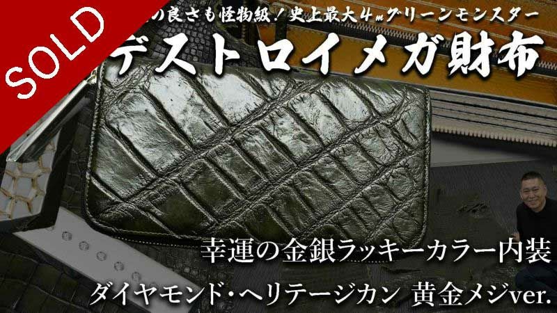 完売《YouTube限定裏メニュー》【池田工芸】超巨大クロコダイル「デストロイ」【史上最大級】グリーンモンスターメガ財布≪ダイヤモンドヘリテージカン黄金メジver.モデル≫【10月10日頃出荷】