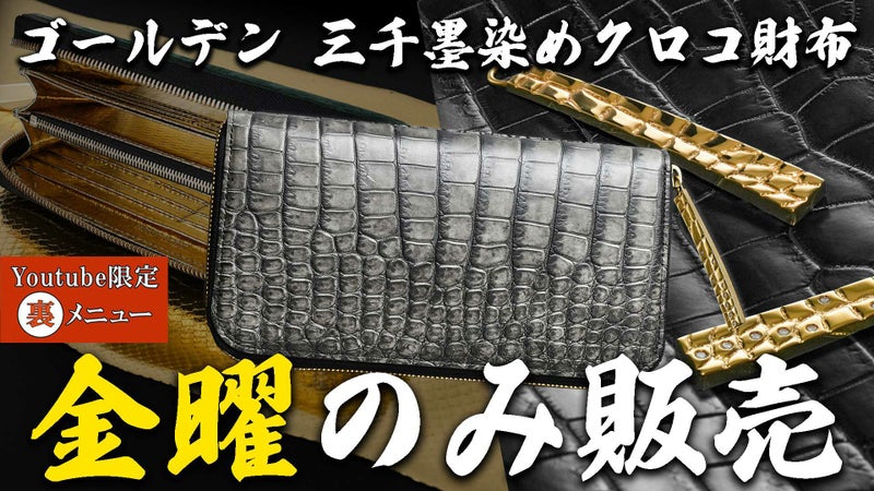 〈最強の個性10億分の1の出会い三千墨染めクロコダイル財布 黄金内装ver. 最新オーダー受付状況 〉 時点 2026年4月30日頃出荷分…残り1本 ※池田工芸では創業80年の歴史の中で築いたタンナーとの信頼により、 国内に入ってくる革の中でも、ごく少量の最高級クロコダイルのみを厳選して手配しています。 サイズが大きく斑の並びが美しい、これらのクロコダイルは世界的にもたいへん希少なため、 現在オーダー受付中のものが完売すると、再販売が叶わない可能性もございます。 |