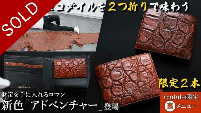 完売【池田工芸】《YouTube限定裏メニュー》超巨大クロコダイル「デストロイ」新色アドベンチャーで仕立てる”2つ折り顎財布”【7月11日頃出荷】