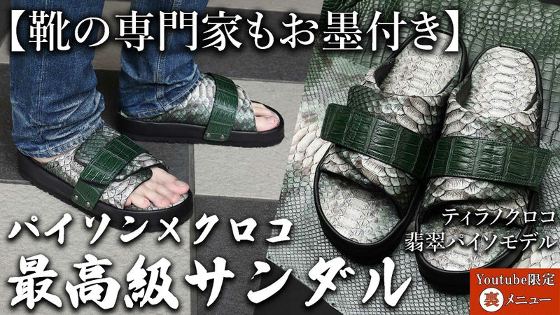 1年中履ける!【池田工芸】《YouTube限定裏メニュー》クロコダイル×パイソンに、究極に癒される。 ラグジュアリーレザーサンダル "First Class"「ティラノ×翡翠パイソン」【5月21日頃出荷】
