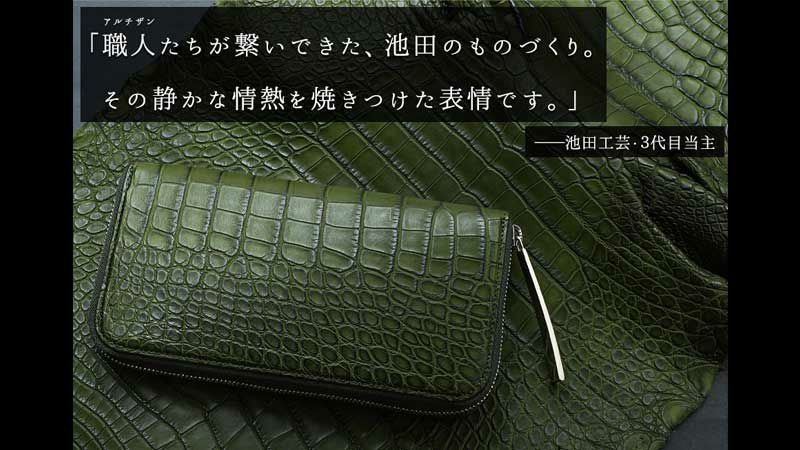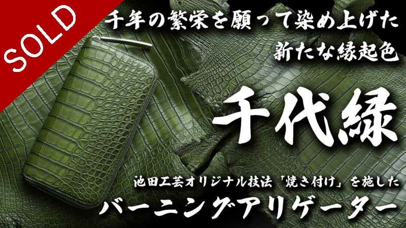 他の画像を見る 残り2本【池田工芸】《YouTube限定裏メニュー》バーニングアリゲーター一枚革財布:千年の繁栄を願って染めあげた新たな縁起色 『千代緑』グリーン【4月30日頃出荷】 販売価格 ¥ 242,000 税込 お気に入りに登録する