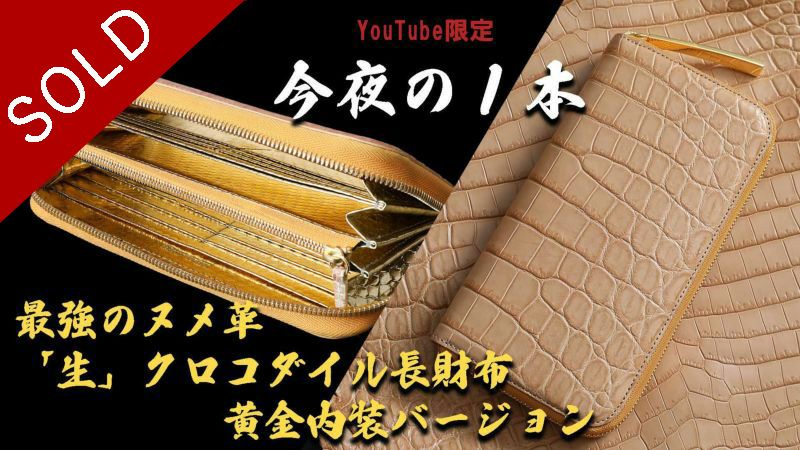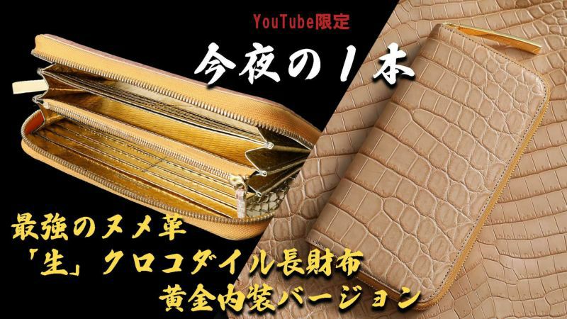 他の画像を見る 先着順数本のみ【池田工芸】《YouTube限定裏メニュー》「10年育てたい、最強のヌメ革「生クロコダイル」の“一枚革”財布オール黄金内装ver.【4月30日頃出荷】 販売価格 ¥ 286,000 税込 販売開始前です。 販売期間 2026/03/05 0:00 〜 2026/03/05 23:59 お気に入りに登録する