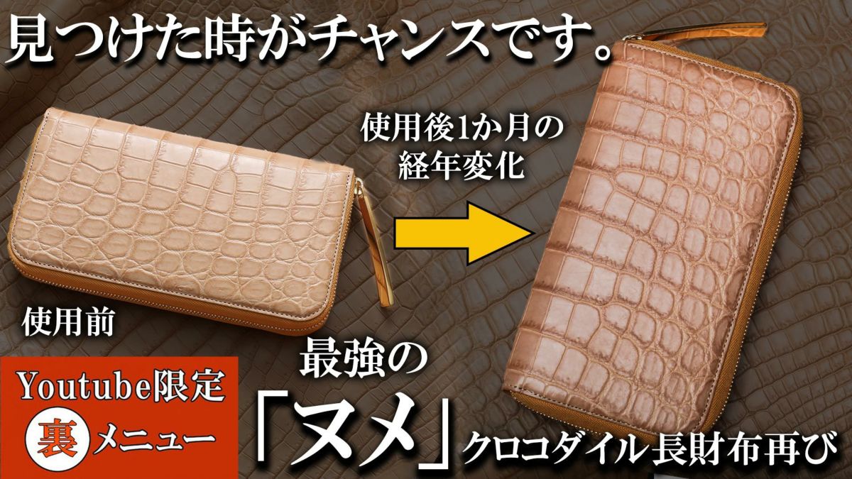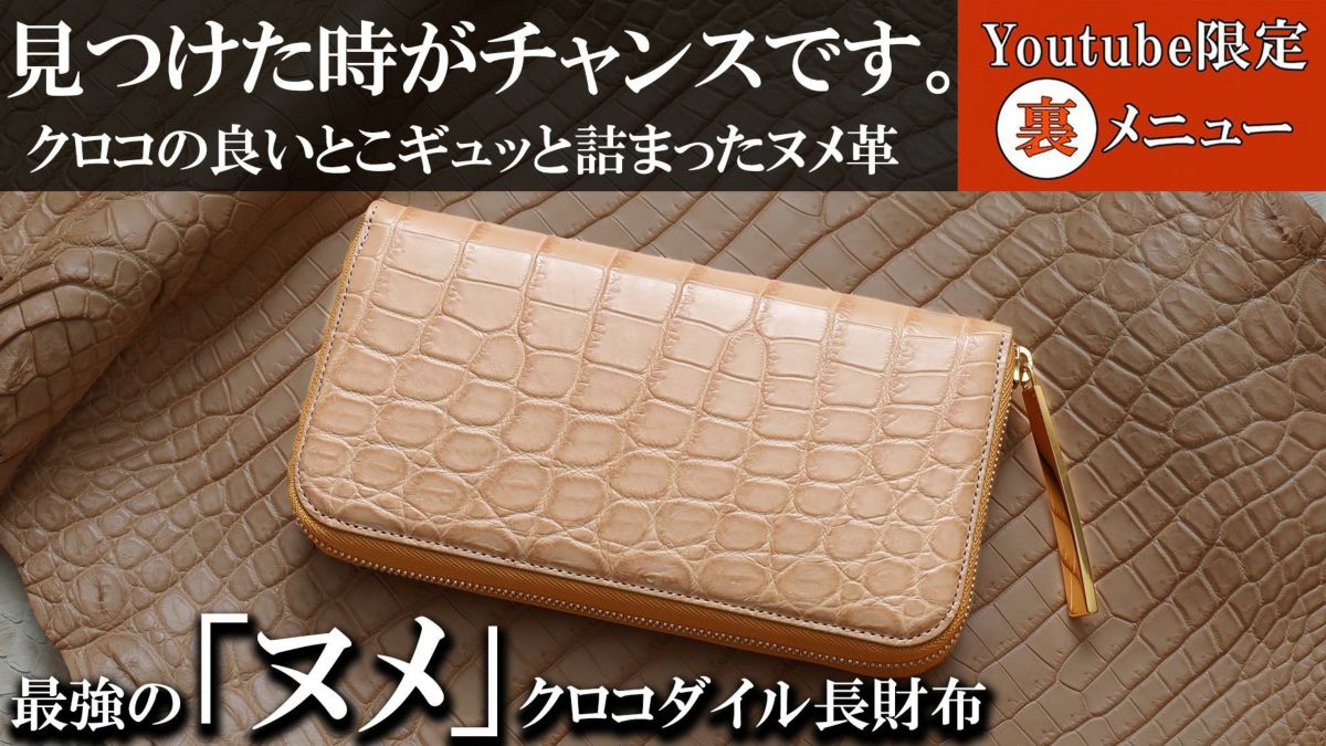 他の画像を見る 先着順数本のみ【池田工芸】《YouTube限定裏メニュー》「10年育てたい、最強のヌメ革「生クロコダイル」の“一枚革”財布オール黄金内装ver.【4月23日頃出荷】 販売価格 ¥ 286,000 税込 販売期間 2026/02/28 0:00 〜 2026/03/01 23:59 お気に入りに登録する